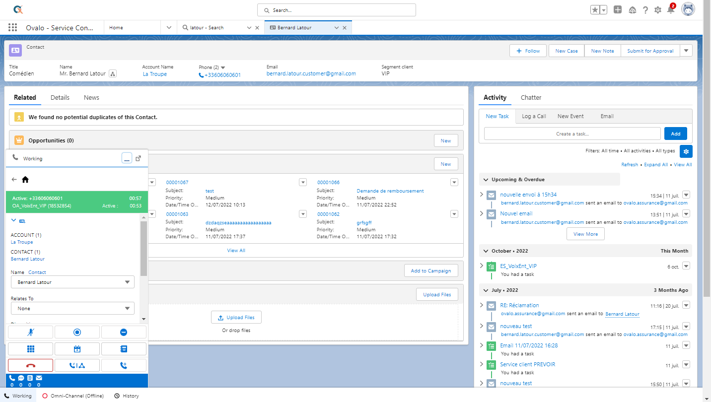 Le bandeau Genesys Cloud intégré avec Salesforce :